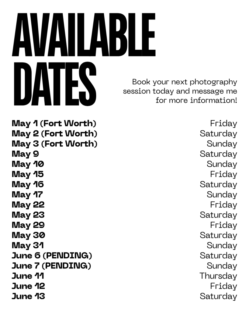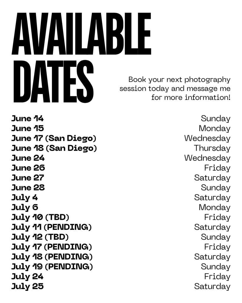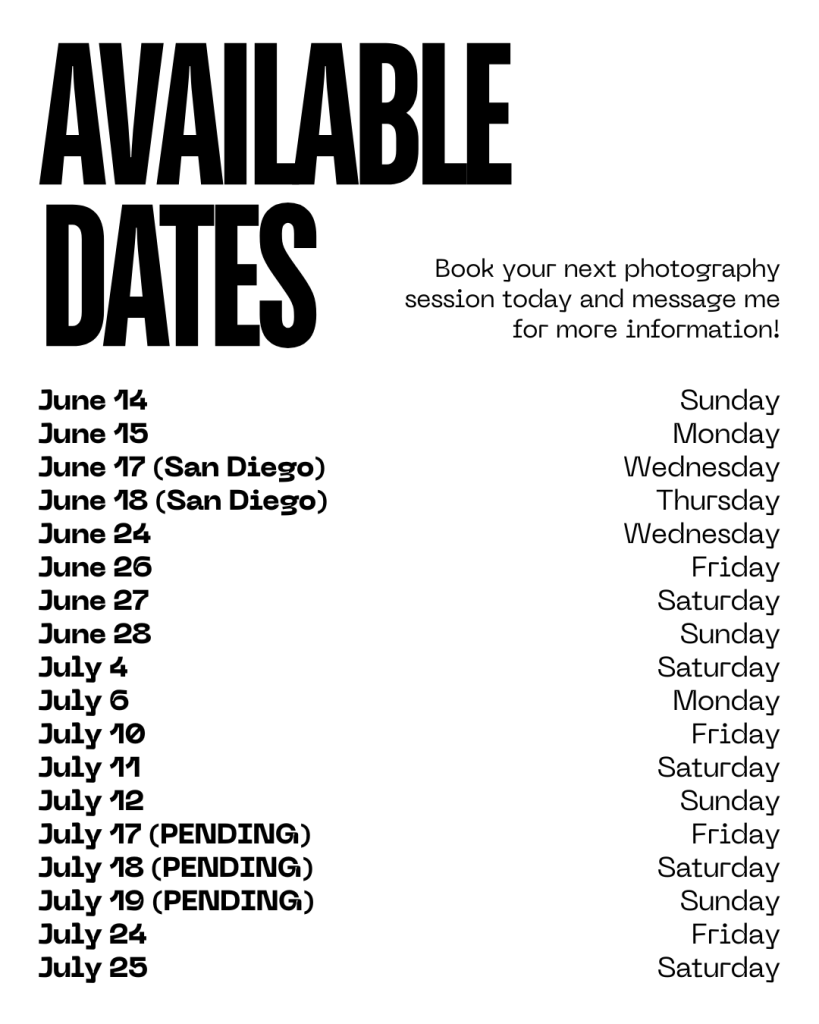 BOOK YOUR NEXT PHOTOGRAPHY SESSION!